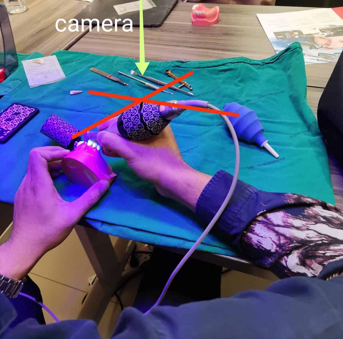 Note the design of the handle with the tracking markers, which is arranged in two different planes. With the camera on top, this helps to counter the effect of the angle when the operator is using the handpiece