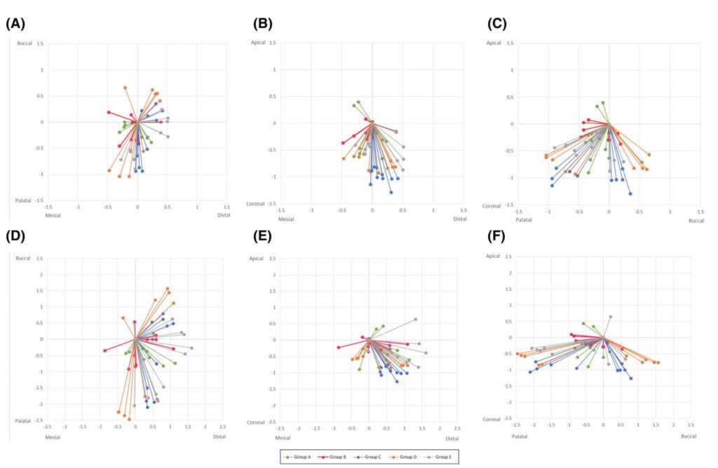 In a simulation study with multiple placements, the deviations of each placement ideally should be scattered equally around the optimal centre, like a symmetric firework. In reality however deviations tend to cluster more towards some sides, pointing to some systemic influence mostly attributed to the operator such as right- or left-handed, ergonomics, optical field as well as specific anatomic locations of the implant site and more. How much clustering of the deviation is acceptable and when should we seek and correct the systemic influence? Well, this is a wider discussion and it should be always be seen in conjunction with the accuracy readings.  Maybe we can discuss this in more detail in the future.